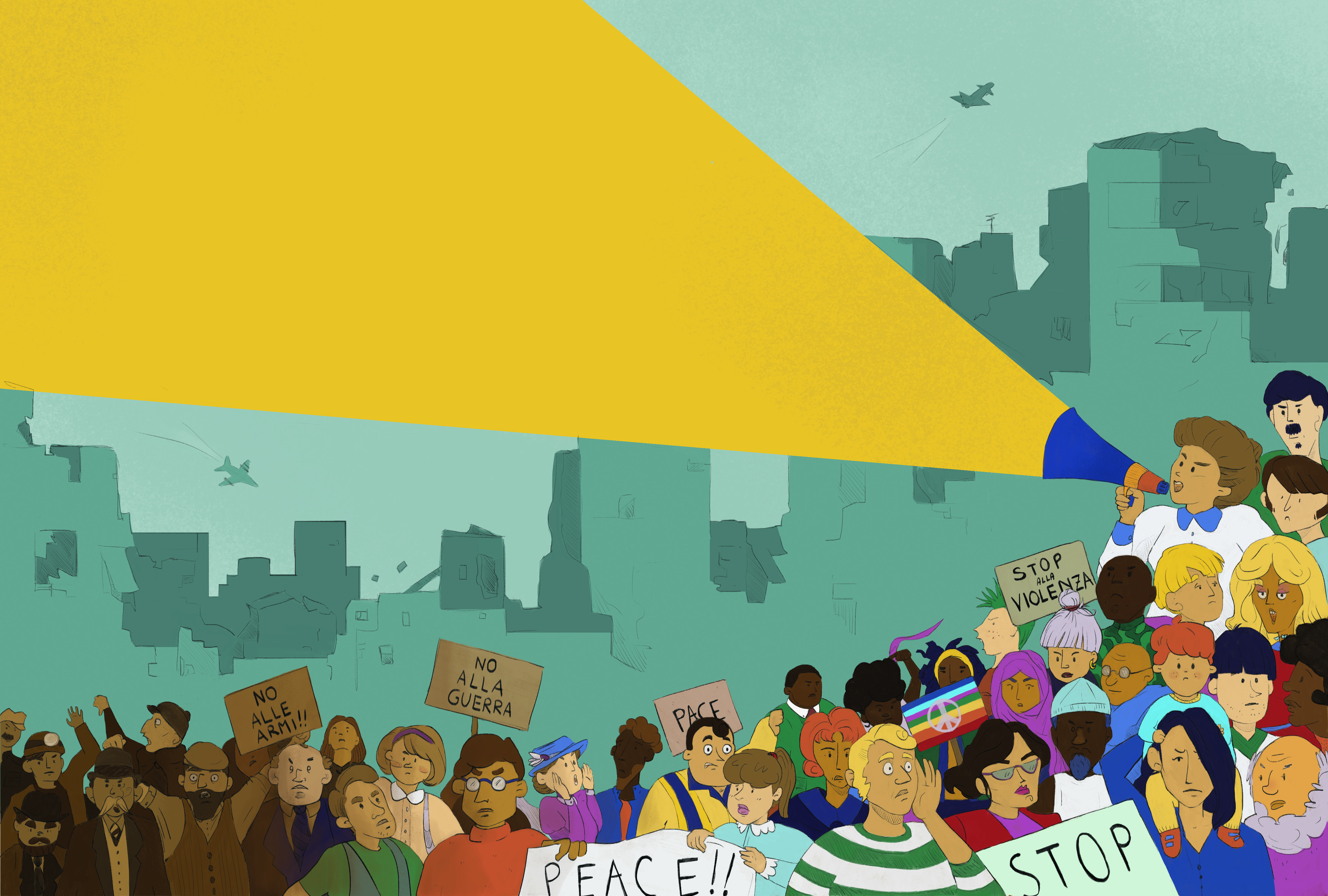 Editorial illustration: internal double page for Jacobin Italia n.15, June 15, 2022